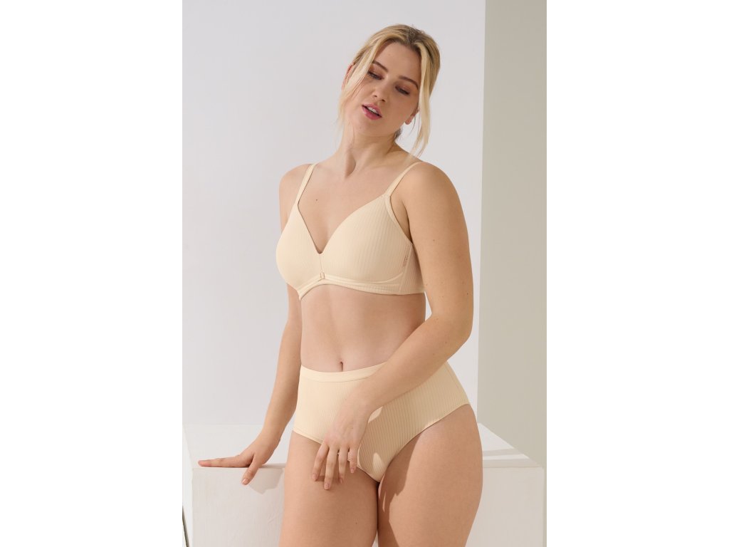 Měkká podprsenka s pěnovými košíčky bez kostice s novým tvarem košíčků do V. Moderní prádlo pro pohodlné všední dny.
